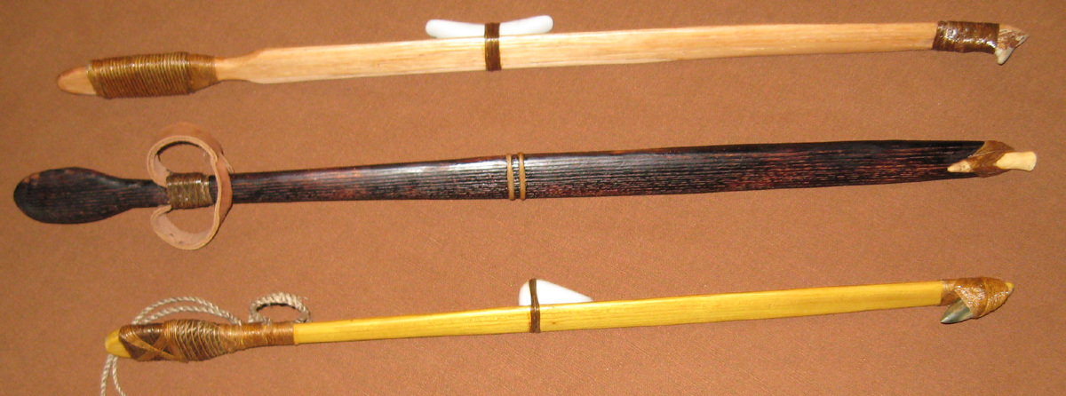 We are also working on developing a new catalog system but it will take time to set up all the categories and change some of the pictures. For example, the Hiawathas need to be updated to show our primitive designs and hemp cordage work. Here are examples of recent Hiawathas. These designs are $100 per atlatl: