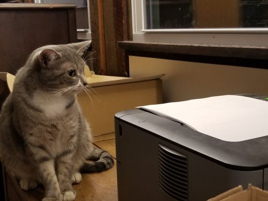 Molly may look like she is watching over the printer. In reality, she is trying to stop the paper so the printer can jam!We are busy packing so please order early so we can get your orders out quickly!